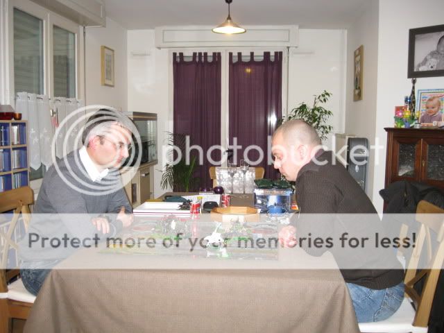 | La suite, la suite,...les photos, les photos,... Trève de plaisanteries, cette partie fut une trés bonne remise à niveau: deux armées pas évidentes à jouer (y fallait un p'tit peu de réfléchissement ) et surtout une carte trés ...comment dire, pour ne pas être vulgaire... trés horripilante. Enfin bref, une partie comme on les aime. @ + Troll l'horripilé (comme la glace )